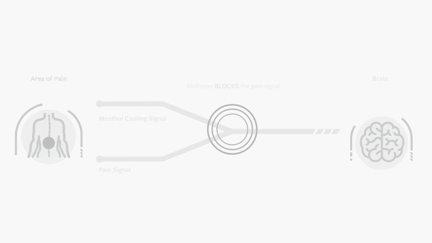 You feel pain when your nerve receptors send a signal from the point of pain to your spinal cord and then to your brain. The cold sensation “counter irritant” caused by the menthol in Biofreeze blocks the nerves that signal pain, so you feel a cooling sensation instead.